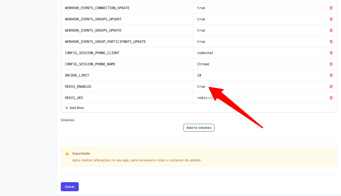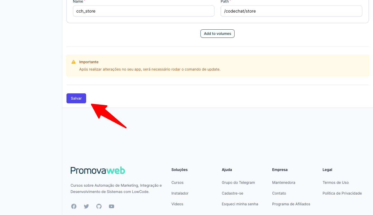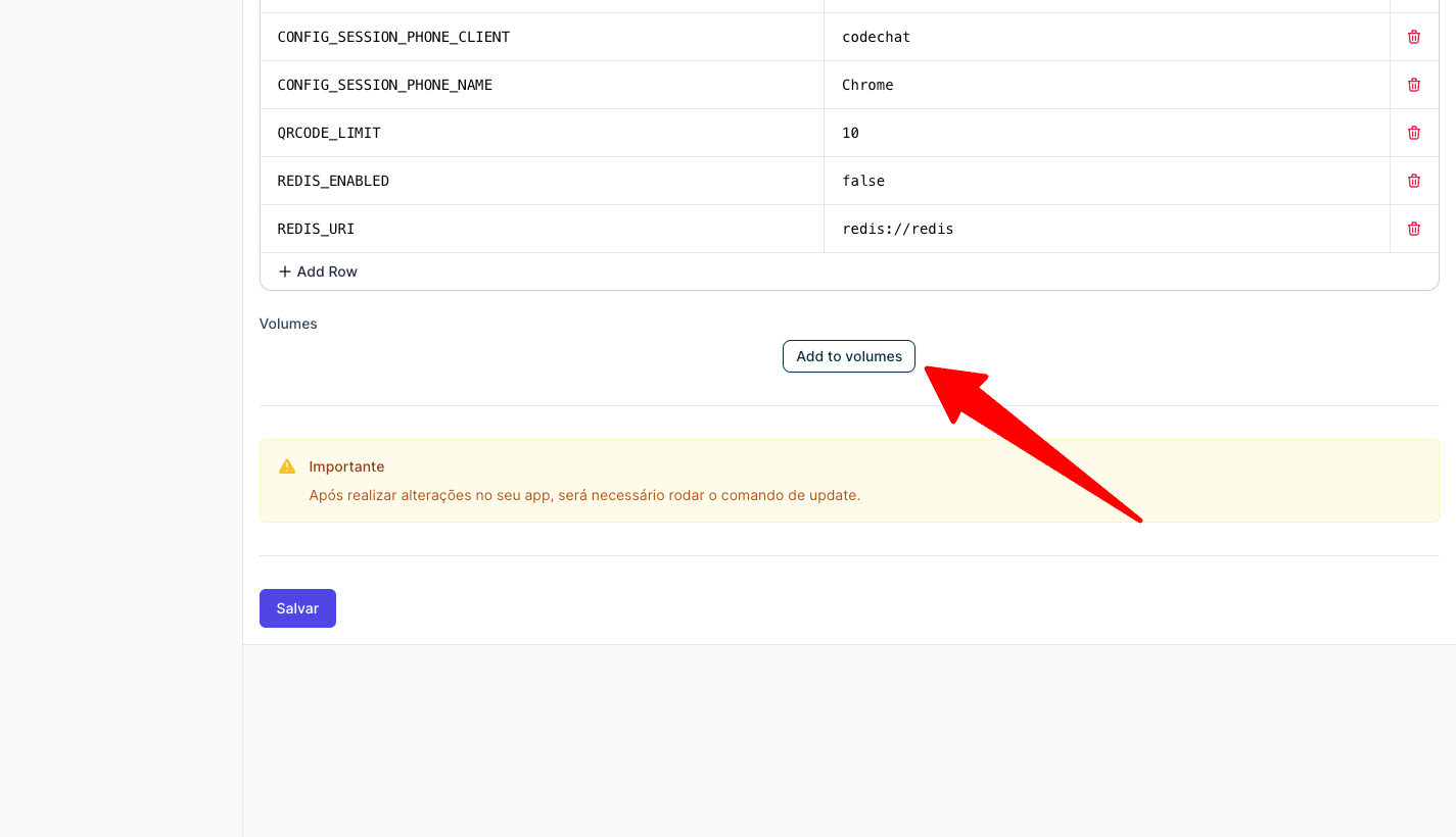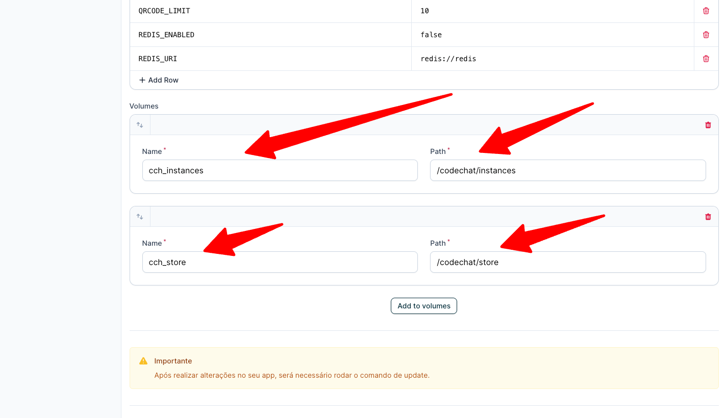 É importante notar que caso você tenha mais de uma instalação do CodeChat no seu servidor, será necessário criar nomes diferentes para os volumes.