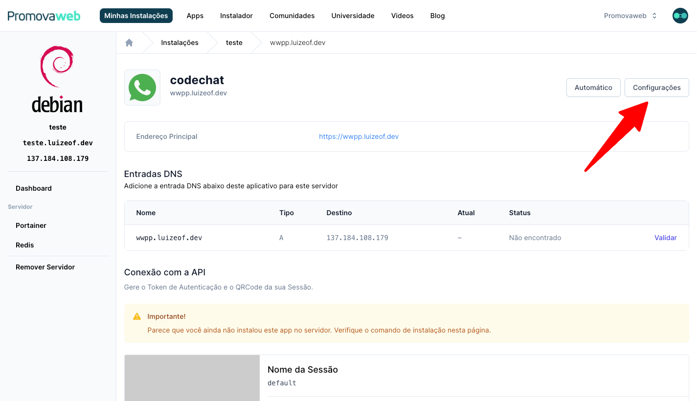 Caso você tenha uma instalação na Promovaweb que está rodando o CodeChat com Redis, basta seguir o passo a passo abaixo para trocar do Redis para Arquivos Locais.